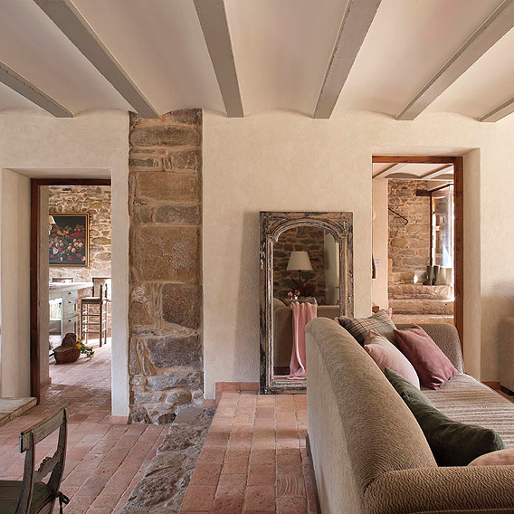 Adecuamos las aberturas y accesos a las nuevas necesidades. Restauramos las fachadas con la piedra autóctona, y rehicimos todas las cubiertas de manera tradicional. Redistribuimos todo su interior creando dos zonas muy diferenciadas. La planta baja donde se sitúan todos los espacios de recibir, y la planta piso, mucho mas privada, con los dormitorios y baños. Cabe destacar en la planta piso el magnífico porche con vistas excepcionales.