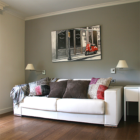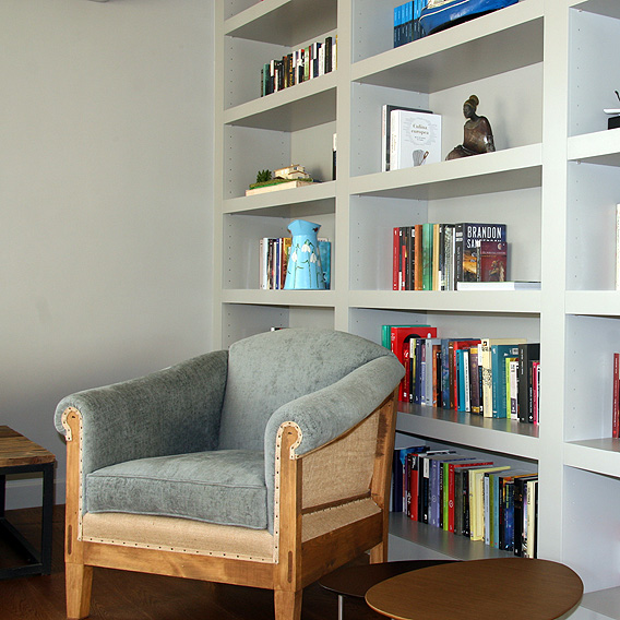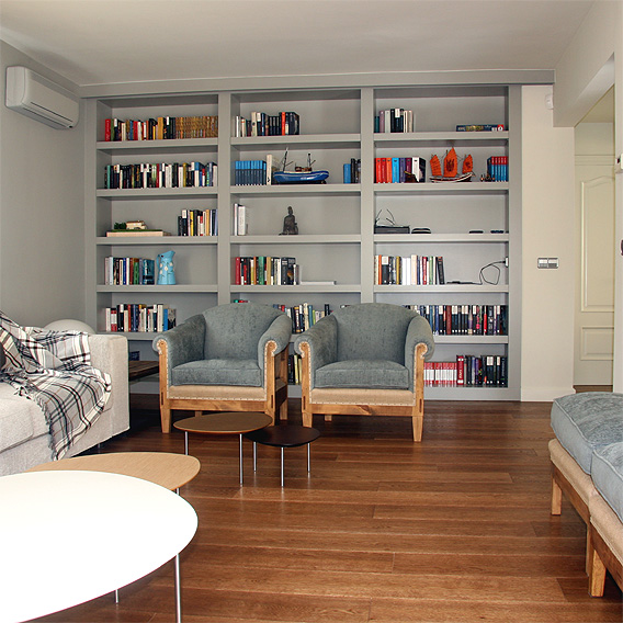 Al ser una vivienda de uso habitual queríamos dotarla de todo tipo de prestaciones domóticas y darle calidez. Unificamos los suelos y el color de la pintura de techos y paredes. Realizamos varias librerías en DM y decoramos los espacios con muebles actuales pero atemporales.