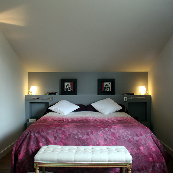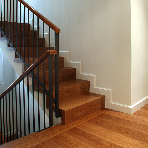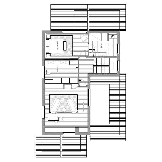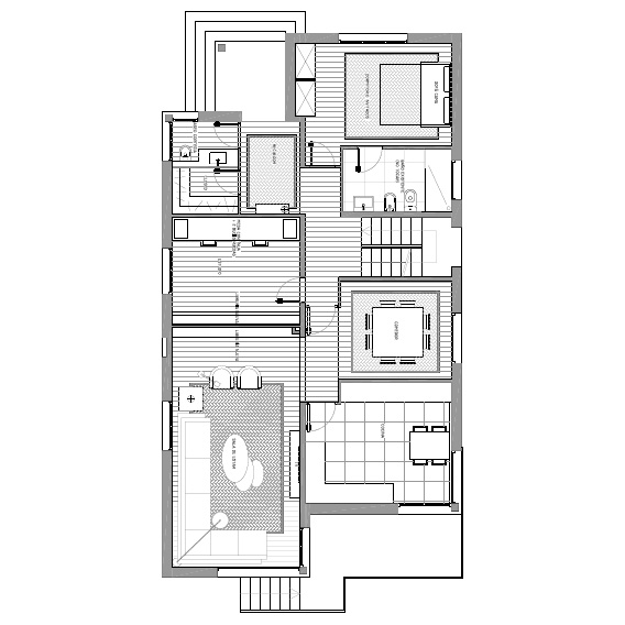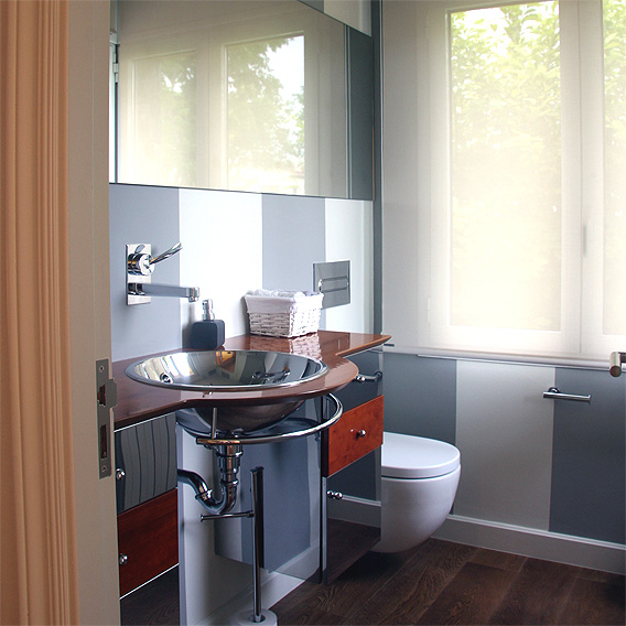Todavía hoy nos parece una decisión acertada el planteamiento distributivo que realizamos en la reforma de esta vivienda unifamiliar. Con una planta muy triturada, llena de habitaciones, conseguimos crear grandes espacios para usos muy concretos. En la planta baja se sitúa la zona de día, con salida directa al jardín. Quedando reservada la planta piso para la suite principal que consta de dormitorio, baño, vestidor y una gran sala de estar.