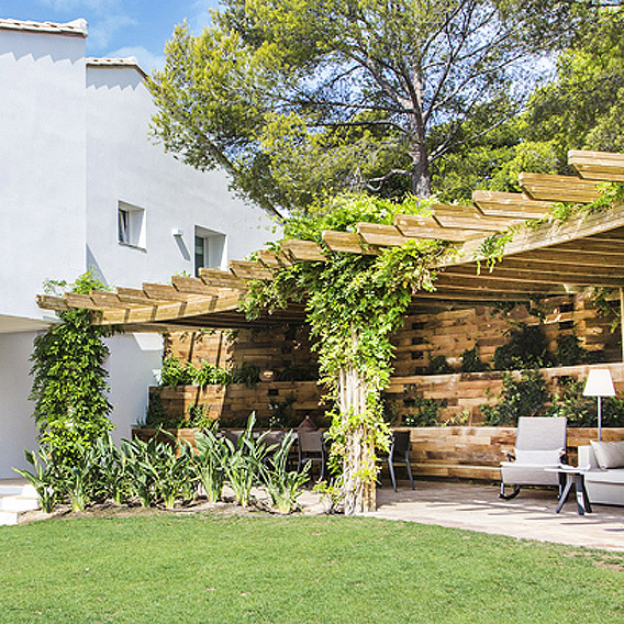 El paisajismo fue definitivo en esta vivienda para darle un aire mediterráneo y de relax.