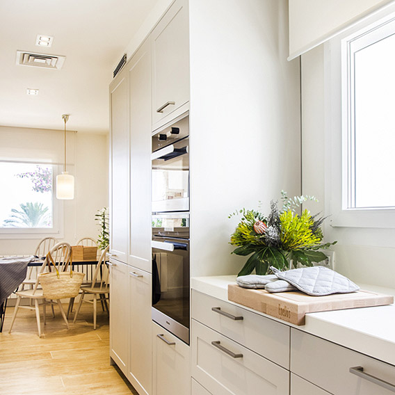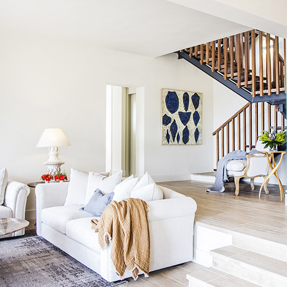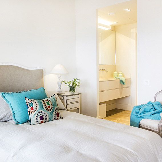 Para adaptarla a las necesidades de una familia de cinco miembros, con posibilidad de ampliarse, redistribuimos todo su interior creando cuatro suites. Agrandamos la zona de estar, eliminando la entrada, el comedor separado y la salita de la televisión. De esta forma creamos un gran espacio que comunica directamente con el porche exterior, que se convierte en un salón de verano.