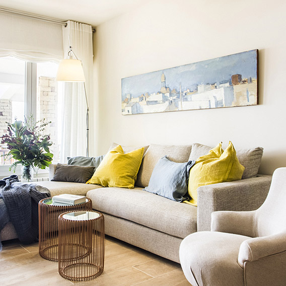 Reutilizamos algún mobiliario que los clientes tenían y no querían desprenderse como la mesa de centro de mármol del salón para la que diseñamos unos pies en hierro.