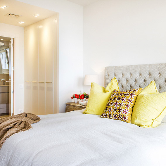 Las tonalidades cromáticas que utilizamos fueron neutras, permitiéndonos alguna concesión de color en los textiles.