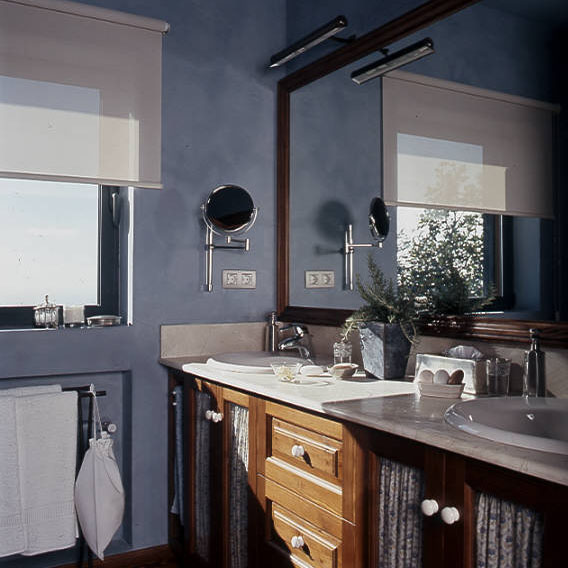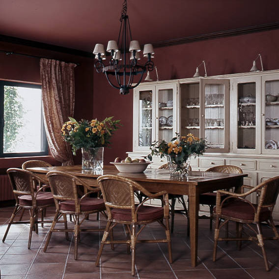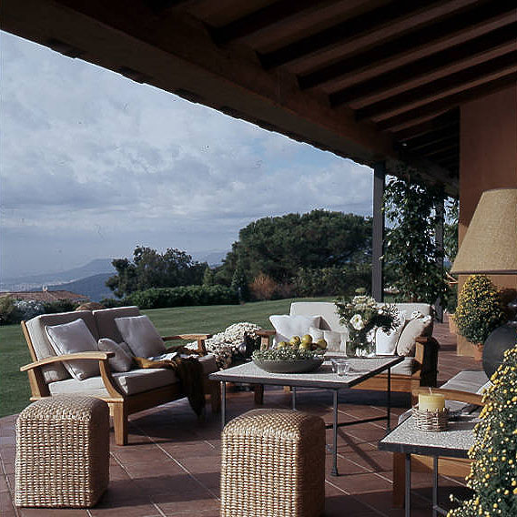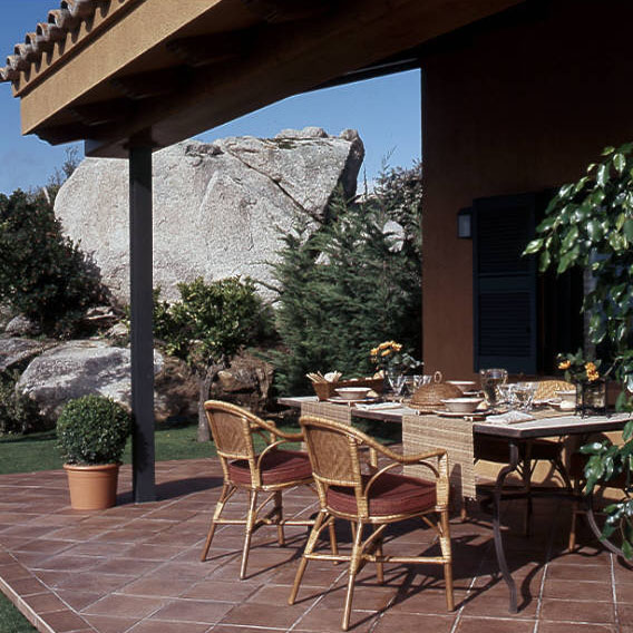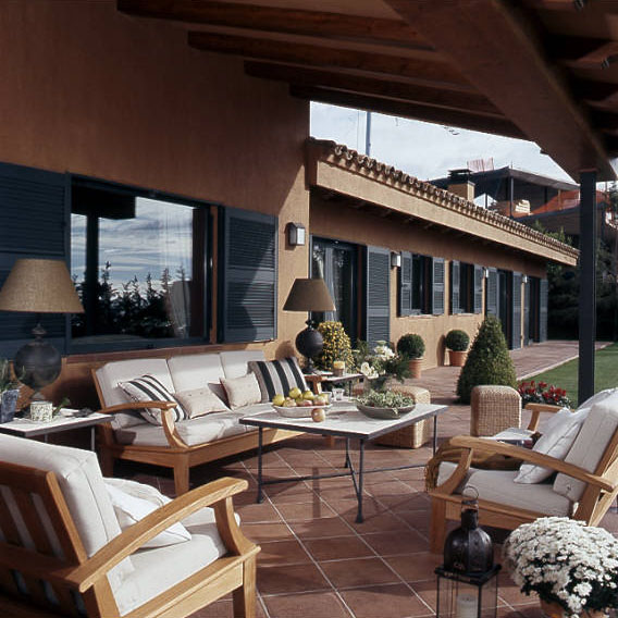 Al tratarse de una casa de gran extensión uniformamos los materiales y la pintura. Todos los suelos son de toba, las carpinterías de aluminio, las puertas y armarios fueron construidas en madera de roble. El mobiliario es atemporal con toques rústicos, siempre buscando el confort.